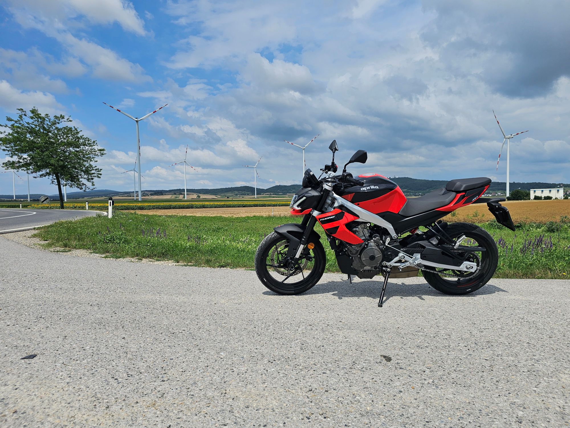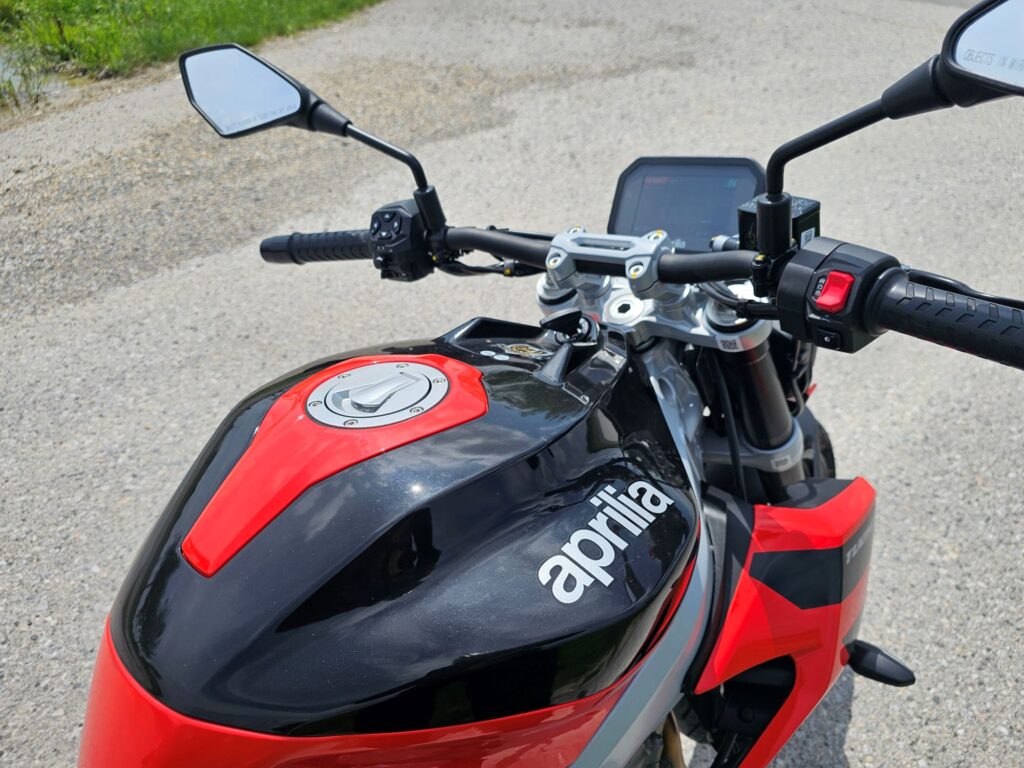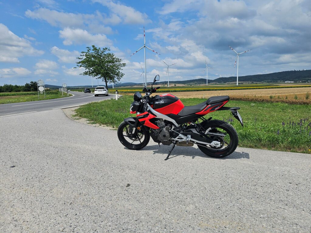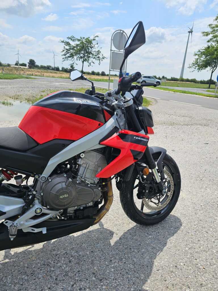 V meste oceníte silu odspodu, ktorá z motorky robí svižného spoločníka medzi autami. Krátke akcelerácie sú okamžité a Tuono pôsobí ľahko. Na okreskách prichádza jeho pravá tvár – ostré riadenie, stabilita a motor, ktorý v stredných otáčkach ťahá ako väčší stroj. Tvrdý podvozok síce na rozbitých cestách trestá, ale pri ostrej jazde odmeňuje absolútnou presnosťou.