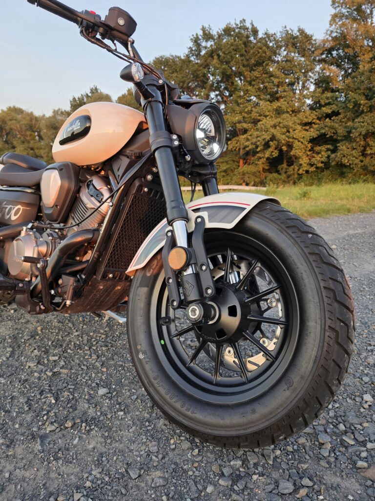 Nízke sedlo 705 mm, hmotnosť 215 kg s nízkym ťažiskom a predvídateľný charakter robia z Chinchilly stroj, s ktorým sa cítite kompetentne od prvých kilometrov. Displej je prehľadný, hoci na priamom slnku má slabší kontrast — jediná výraznejšia výhrada po celom dni jazdy. Chinchilla 500 je dôkaz, že čínske moto-inžinierstvo dospelo. Nie vo všetkom, nie všade — ale tam, kde to jazdca trápi každý deň, táto motorka obstála.