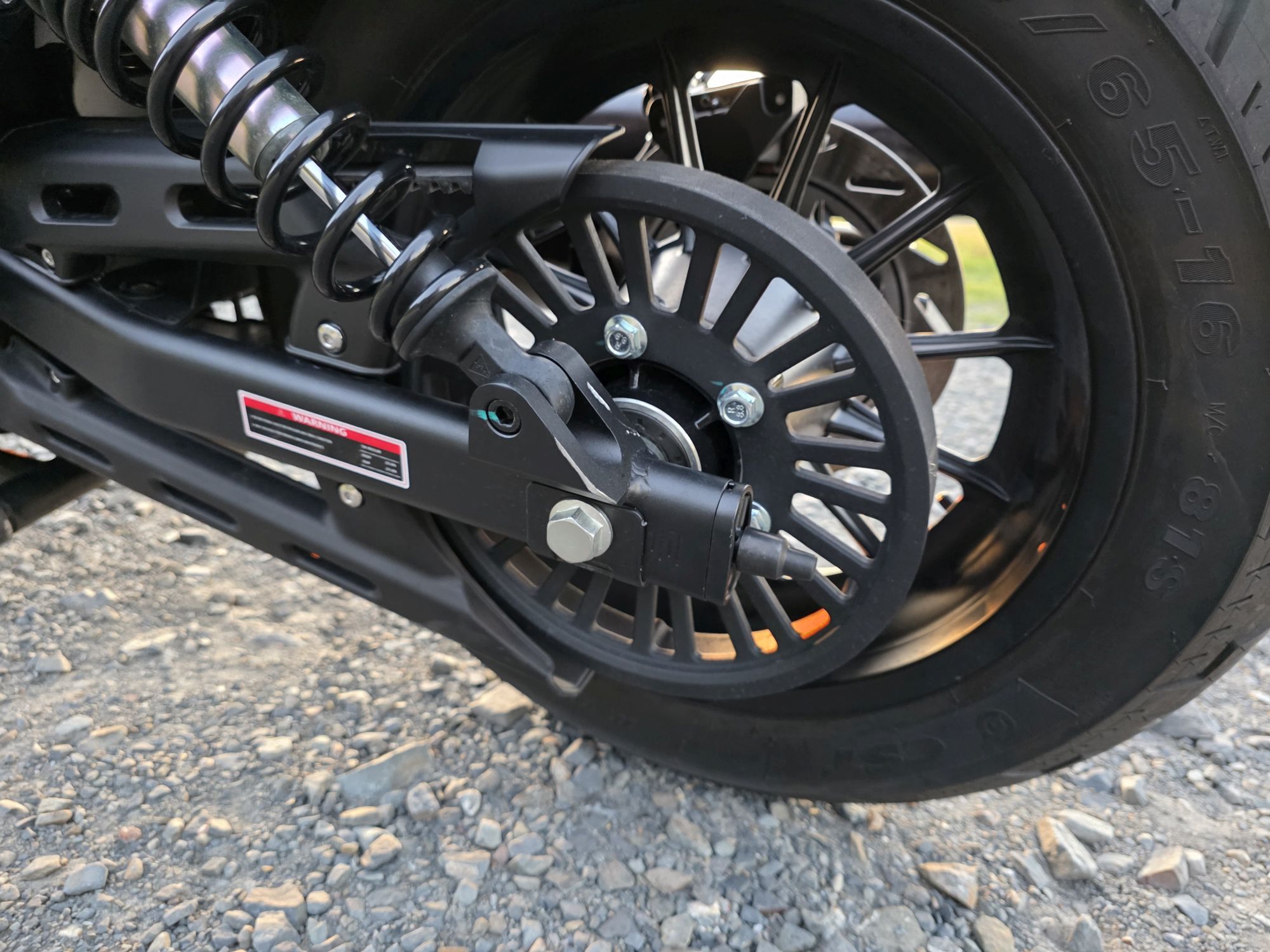V triede retro cruiserov do 500 cc sa na brzdy príliš nespoliehajte — tak znie neoficiálne pravidlo. Chinchilla ho porušuje. Predný kotúč 320 mm so štvoripistovým radiálnym strmeňom nastupuje rovnomerne, bez trhania a bez prekvapení. Dávkovanie je čitateľné — presne viete, koľko dávate a čo dostanete späť.