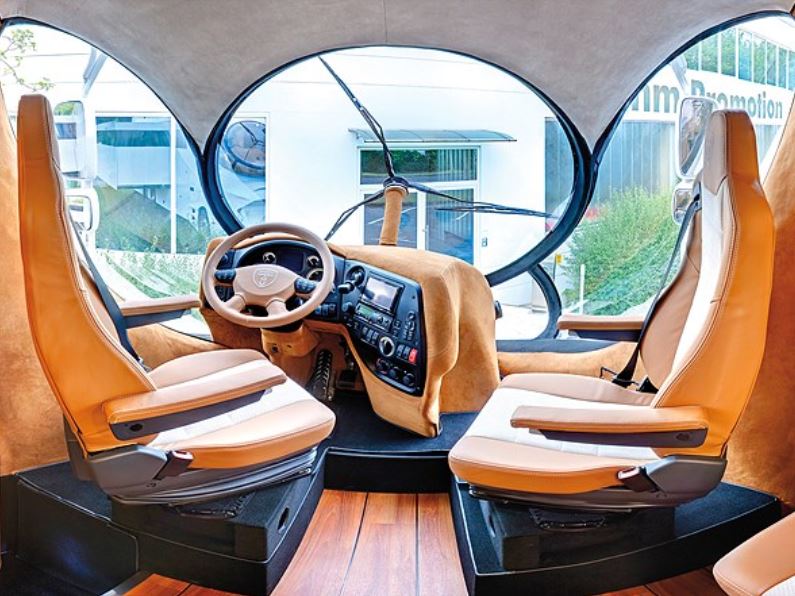 V tom prepojenom priestore potom možno vytvoriť konferenčné sedadlá aj vpredu, kým sa ocko napapá, mamka drží kormán (design od mojho obľúbeného šialenca Luigi Colaniho, bohužiaľ koronavírusu sa nedožil, zomrel vlani v septembri v Nemecku, mal 91 rockov):
