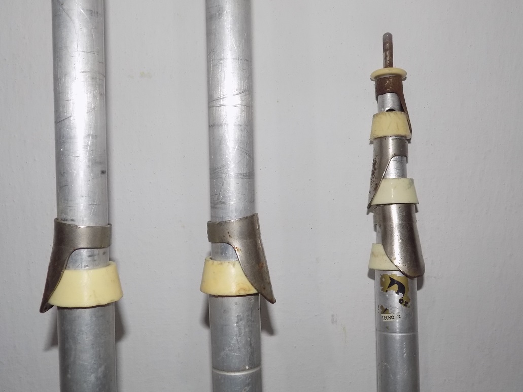 Mala to byť šibenica, ale trojnožky sú ľahšie, tak som si spomenul na tie kolíky. Spodná tri diely majú roztiahnuté cca 160 cm, to by stačilo, mal som kolíky ale len dva.