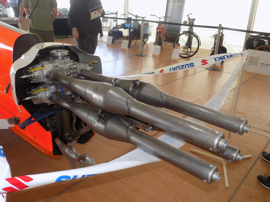 Zaujímavé sú riešenia výfukov dvojtaktov, ako napr. Jawa 350 typ 673, Honda NSR 500, Yamaha RD 500 alebo TZ 750, Suzuki 500 Gamma, alebo trebárs klzák majstra sveta Róberta Hencza zo Štúrova (nech páska nepletie, nie je to Suzuki 😉 ):