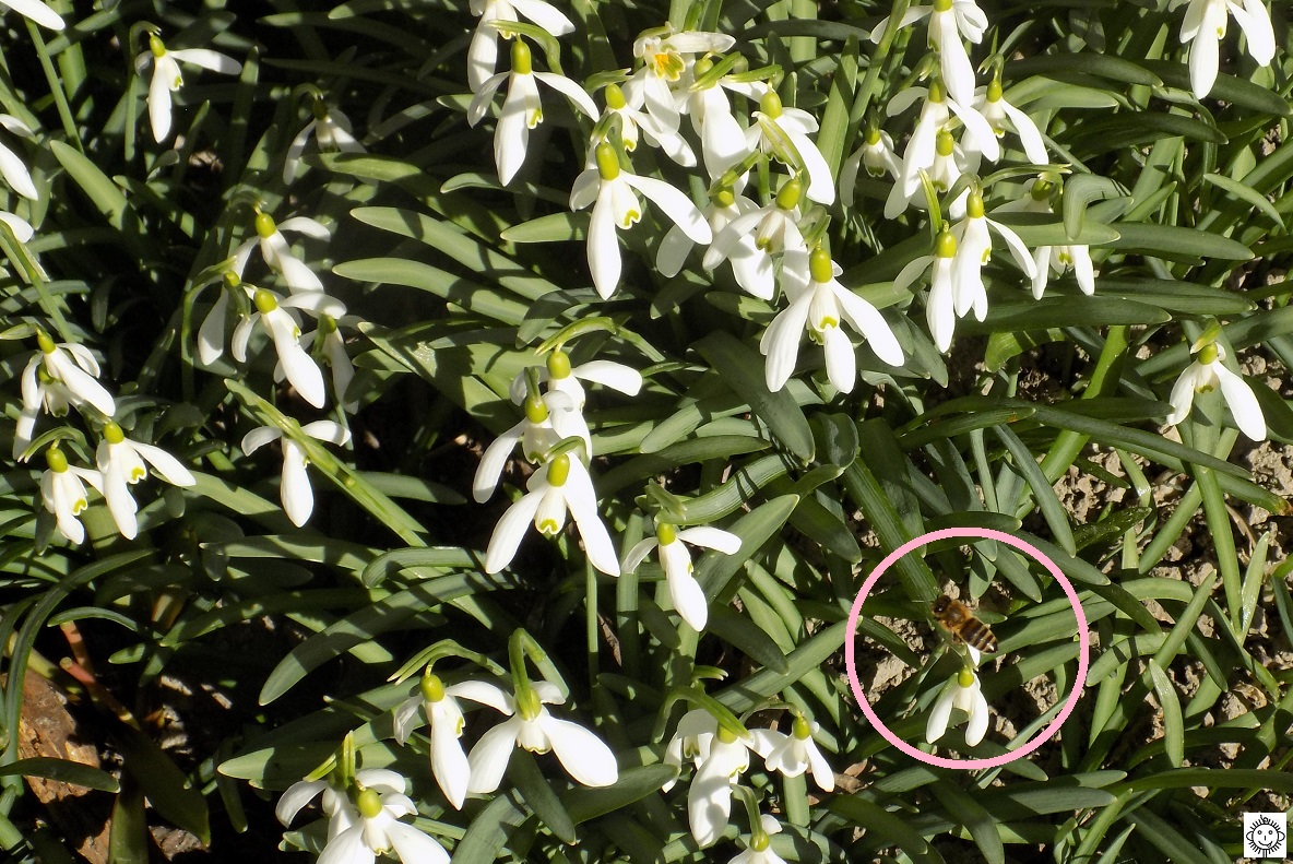 Príroda je pripravená nerovnomerne, totiž snežienky sú prekrásne, ale iné kvety ešte nejak nie sú. Včely však už vyleteli, teplo bolo. Lietali, jak pomätené.