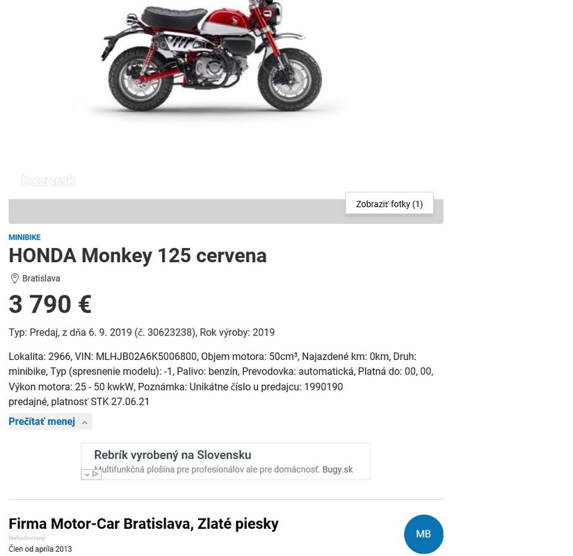 Účastník (Participant)😈 Hladám nejakú novodobú jazdenku Honda Monkey 125, žiaľ, v ponuke (SK) sú zatiaľ len nové.