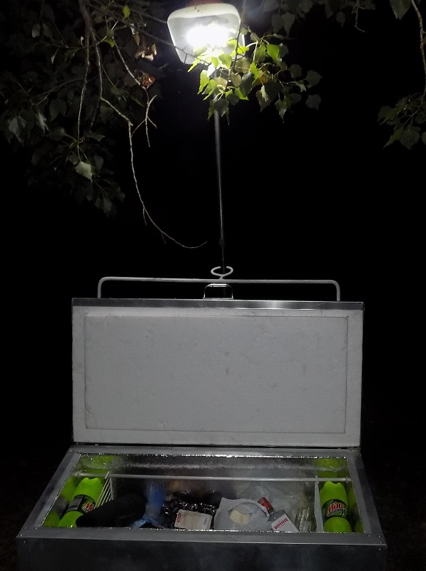 To nie je zaťažkávacia skúška, montujem tam žiarovky pod plachtu… 😁Aj „ľadnička“ slúži dodnes, ľad (18 kg) v nej vydrží v tieni dva-tri dni a vojde tam k tomu cca 60 pív, trochu Bifíka a aj nejaké to mäsko či iné suroviny. Tá sa fakt osvedčila, zabere síce celý kufor auta ale je ako magnet, obyčajne u nej stojí fronta kamošov, už sa teším na sezónu pri Dunaji. Vozík ale berem len výnimočne, pre pravých čundrákov zbytočný luxus… 😎