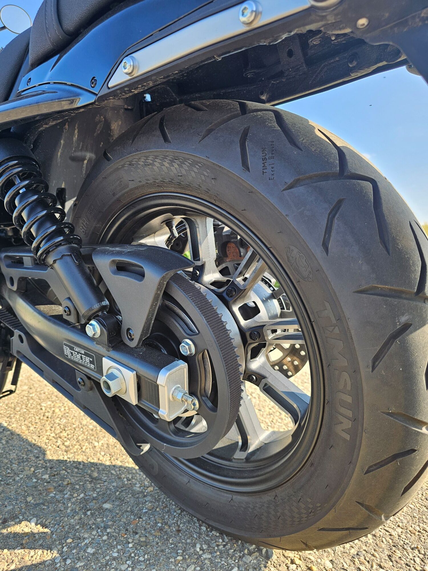 Na rozbitých cestách cítiť, že podvozok je základný. Malé nerovnosti zvládne, ale väčšie jamy a priečne prahy jazdca pretrasú. Tlmiče neponúkajú luxus, ale pre bežnú jazdu fungujú. Pneumatiky Timsun držia slušne na suchu, v daždi si pýtajú ľahšiu ruku.