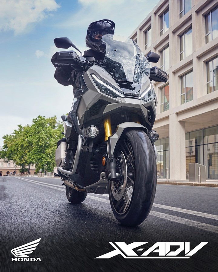 X-ADV nestojí na klasickom skútri. Má 43 mm USD vidlicu, zadný tlmič Pro-Link a svetlú výšku 165 mm. Na 17″ prednom a 15″ zadnom kolese s pneumatikami Bridgestone AX41S zvláda aj ľahký terén.