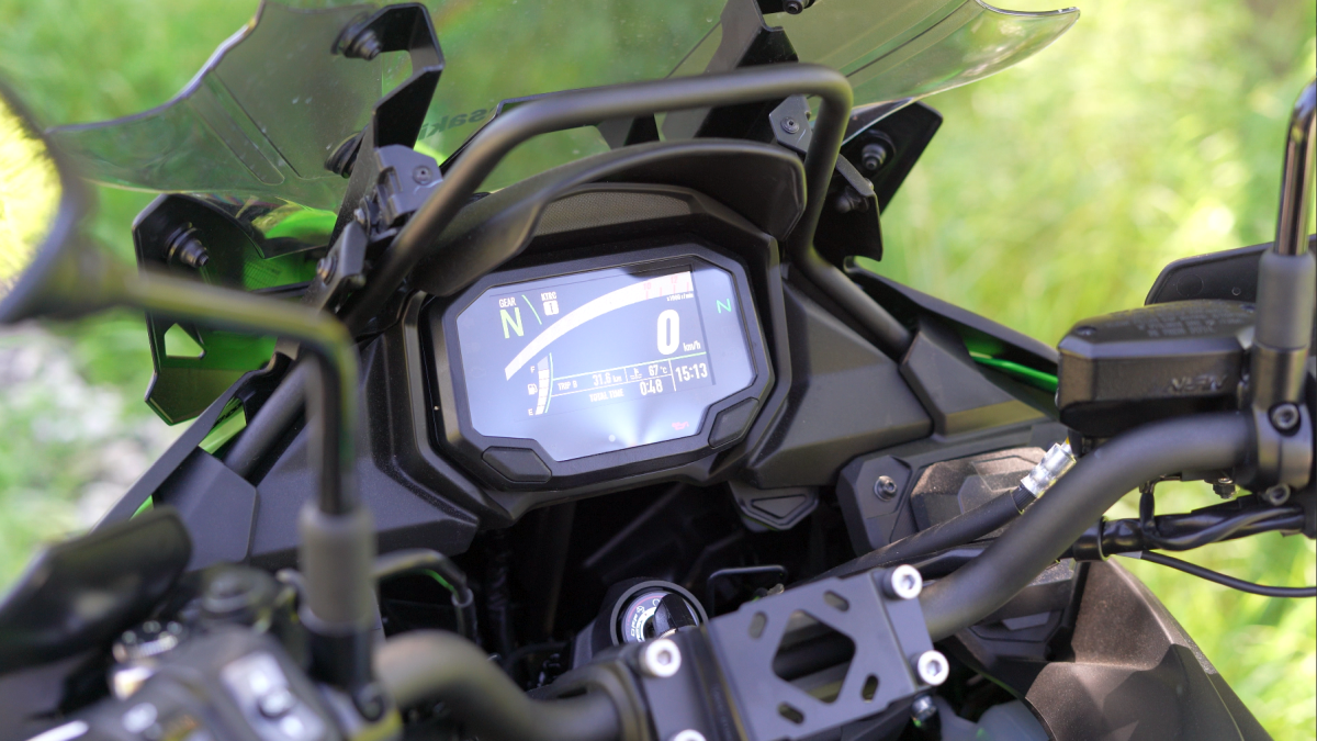 Tomuto zodpovedá aj naladenie podvozku. Má vyšší zdvih, ale na offroad ho neberte, aj keď Kawasaki radí Versys do kategórie adventure tourer. Jeho rajónom sú spevnené , aj keď nekvalitné cesty. Aha áno, to sú tie Slovenské. Menej skúseným bude vyhovovať aj naladenie motora, resp možnosť ho úplne uškrtiť na legálny limit 35 kW. Sériovo dosahuje 49 kW / 67k pri 8 500 ot./min. Na palube je aj nastaviteľná trakčná kontrola.