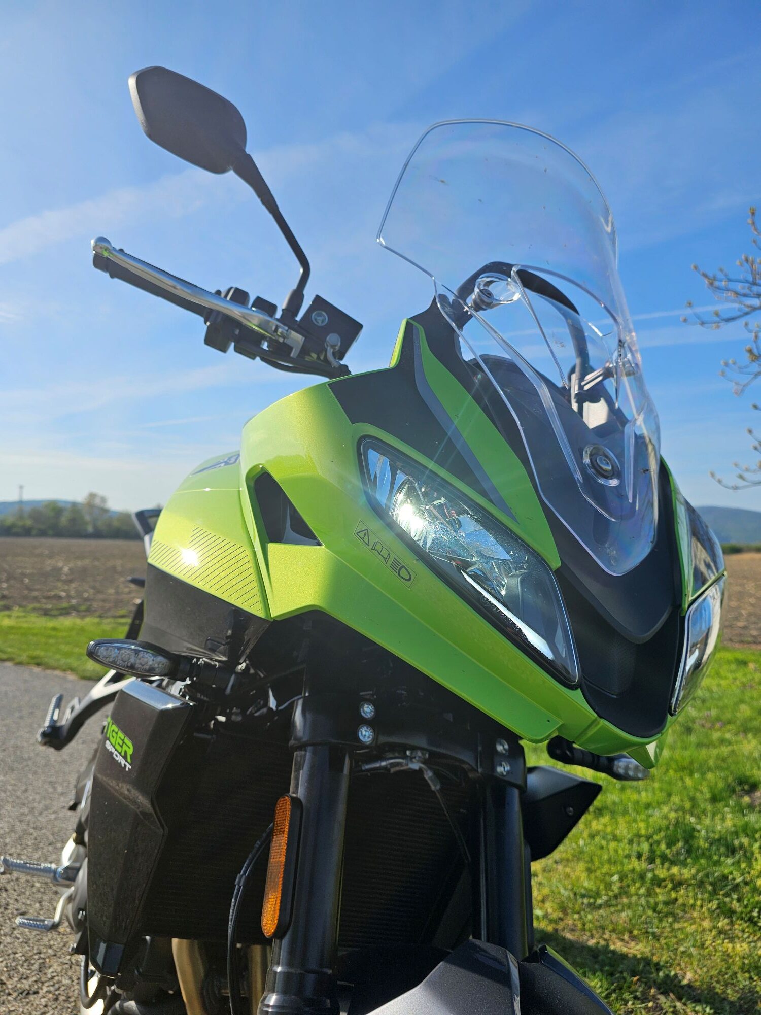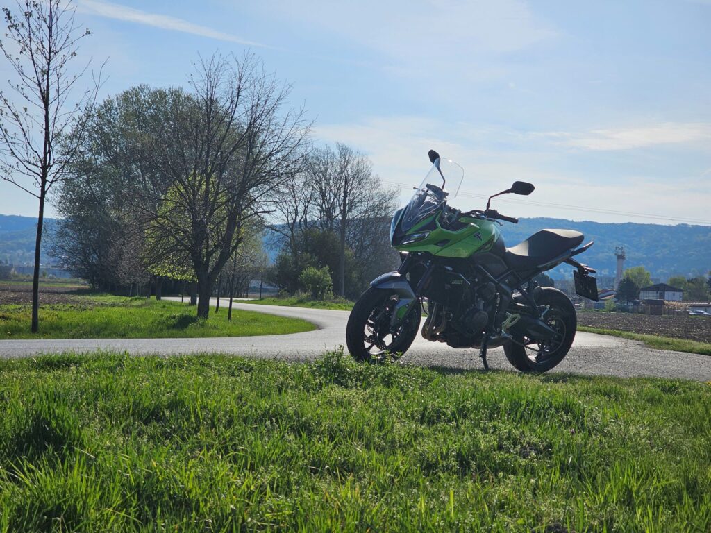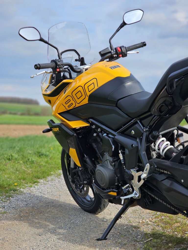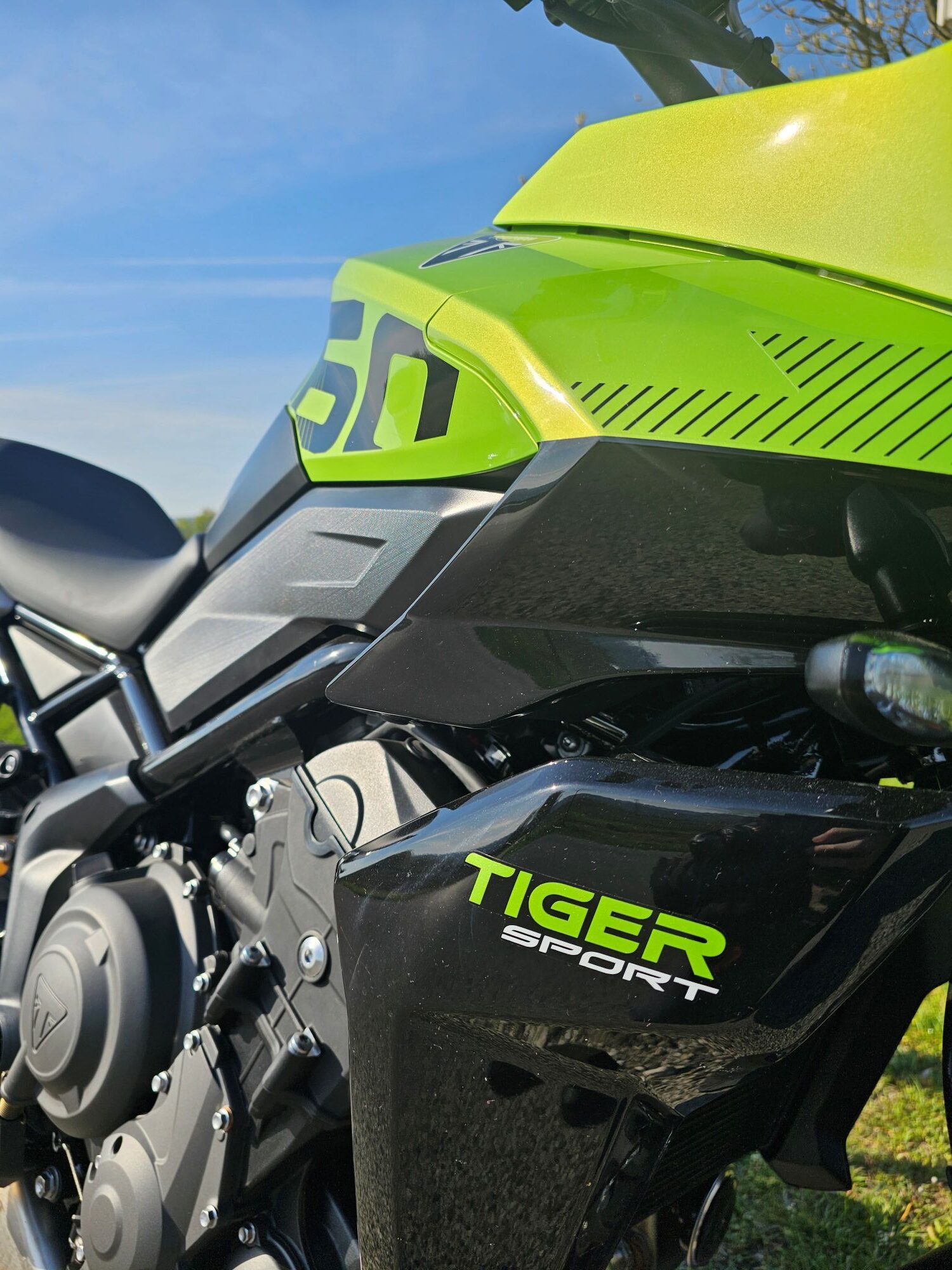 Tiger Sport 800 je stavaný na dlhšie cesty a náročnejšie jazdenie. Vyšší výkon, tuhší podvozok, elektronika prebratá z modelu 660. Motorka pôsobí robustnejšie, ale stále si zachováva športovú iskru.