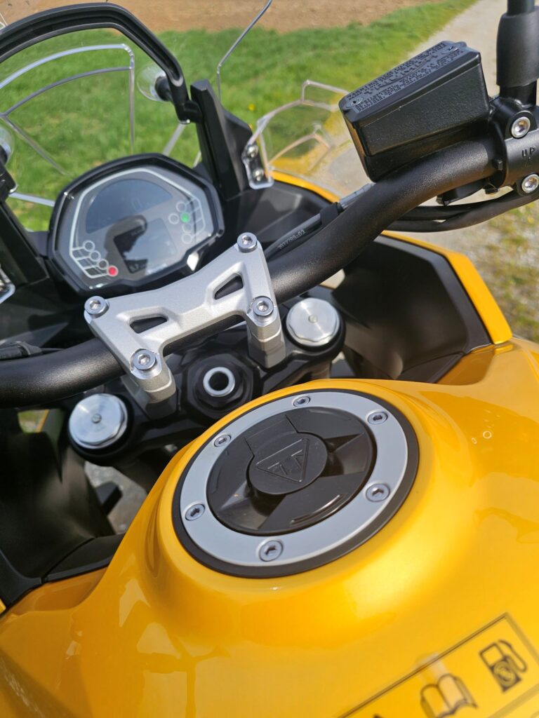 Tu budeme veľmi struční. Je to rovnaké, ako na modeli 660 pre rok 2025. Výbava nikoho neurazí, ale do motorky príliš nezapadá. Možno by to chcelo jemné odlíšenie, nájdeš tu však úpne všetko, čo potrebuješ na cestovanie.
