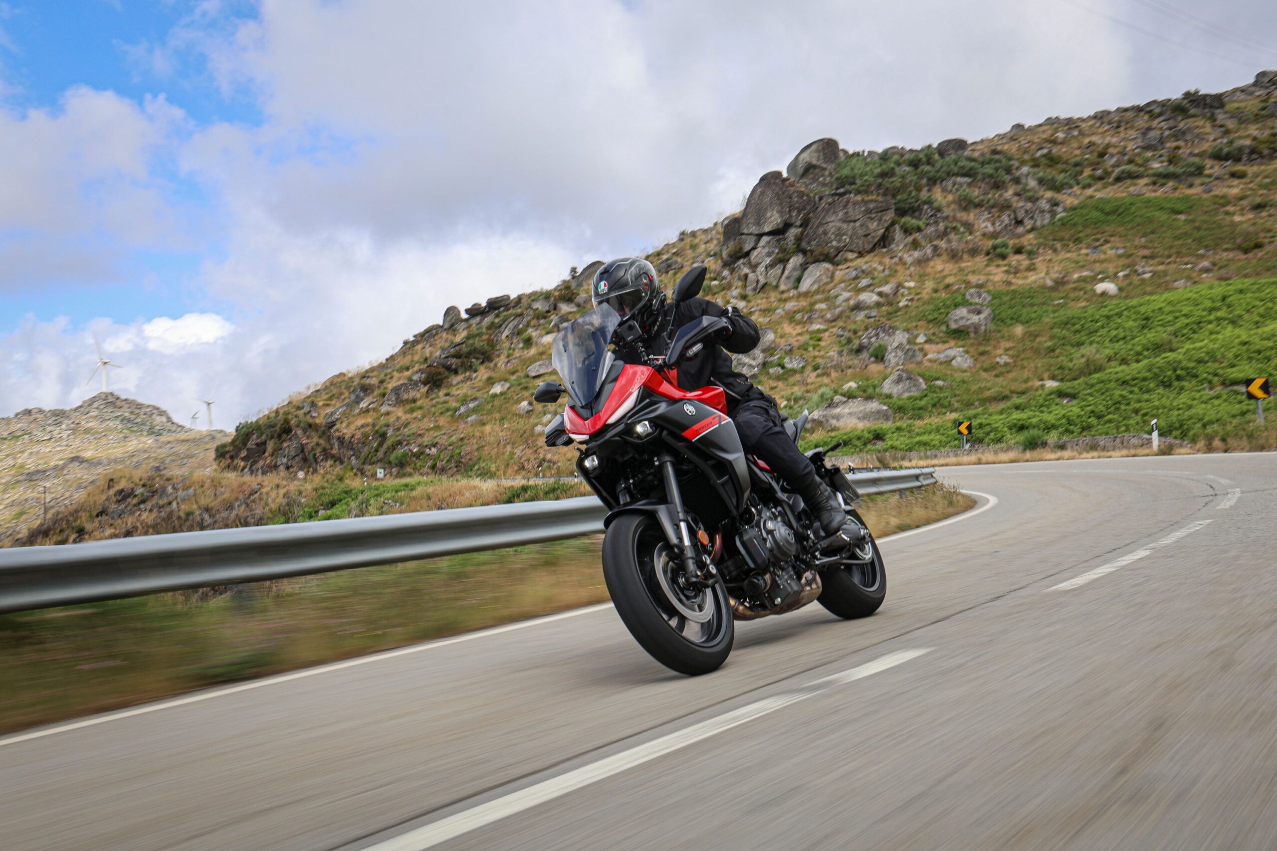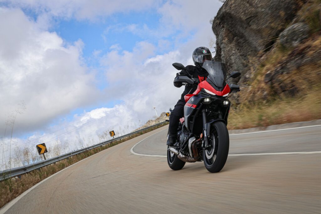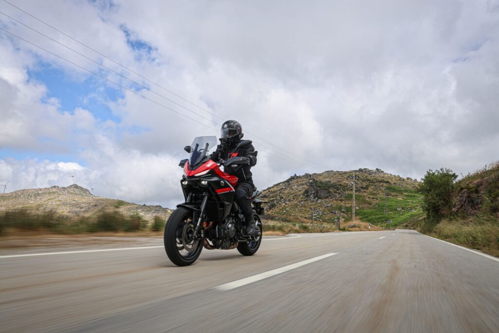 Po jazde v Portugalsku môžem povedať, že Yamaha Tracer 7 je mimoriadne univerzálna motorka. V meste je obratná, nízka hmotnosť znamená ľahké parkovanie, vynikajúci polomer otáčania. Na okreskách je hravá, motor CP2 je živý a chuť zrýchliť má v každom režime. Vyhladená krivka krútiaceho momentu pomohla a motor sa cíti silnejší než je na papieri. Diaľničné presuny už nie sú trápením – tempomat a vyššie plexi ti dávajú pohodlie, o ktorom sa predchodcovi mohlo len snívať.
